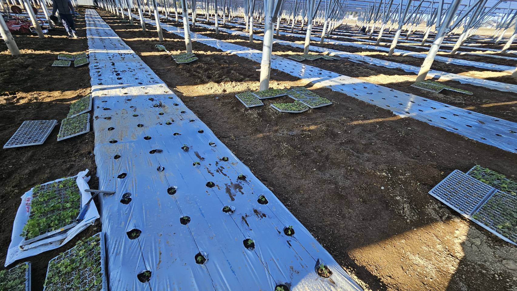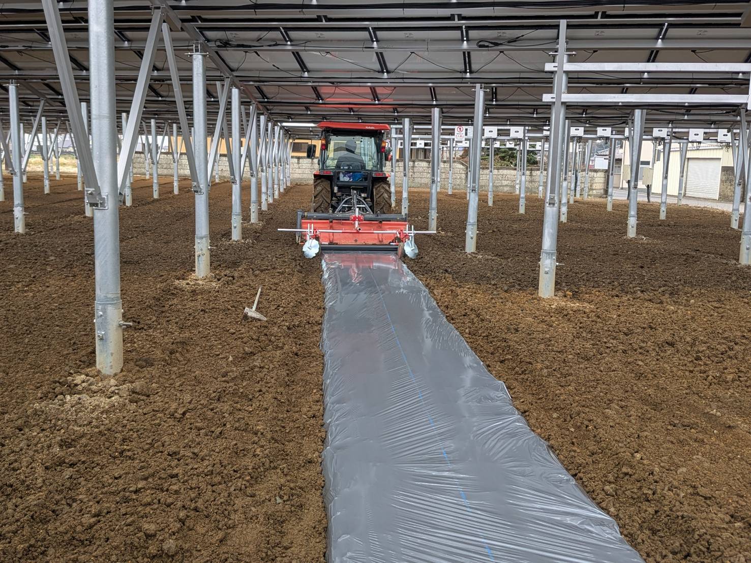 2026-03-17 テ゛ット゛スヘ゜ースの畝立て、マルチ張り 手順4:マルチ張り-2