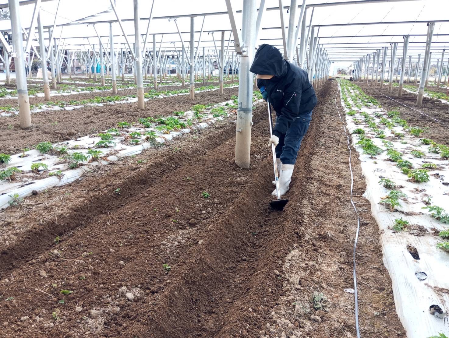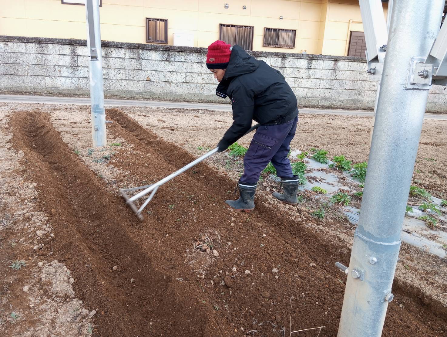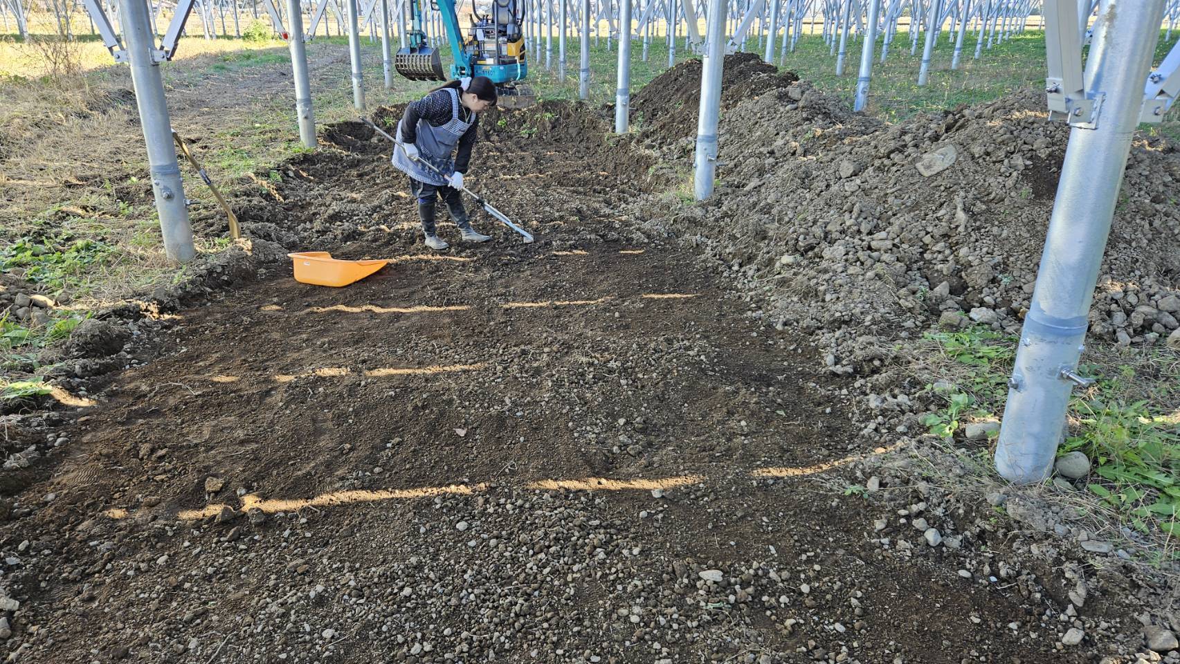 2026-03-17 テ゛ット゛スヘ゜ースの畝立て、マルチ張り 手順3:整地
