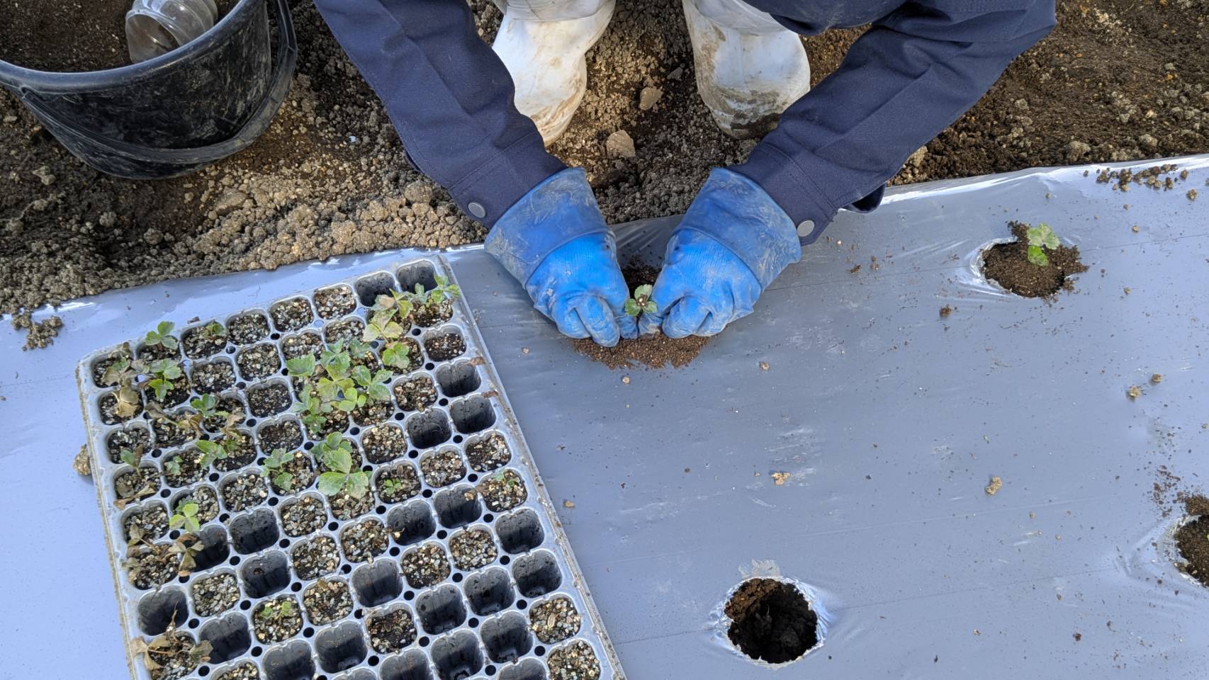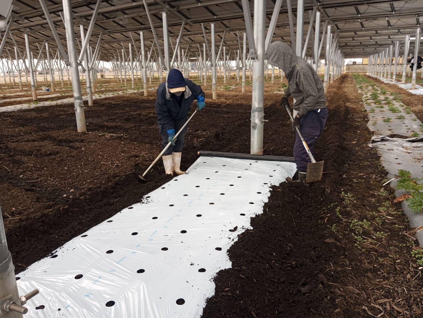 2026-03-17 テ゛ット゛スヘ゜ースの畝立て、マルチ張り 手順4:マルチ張り-1